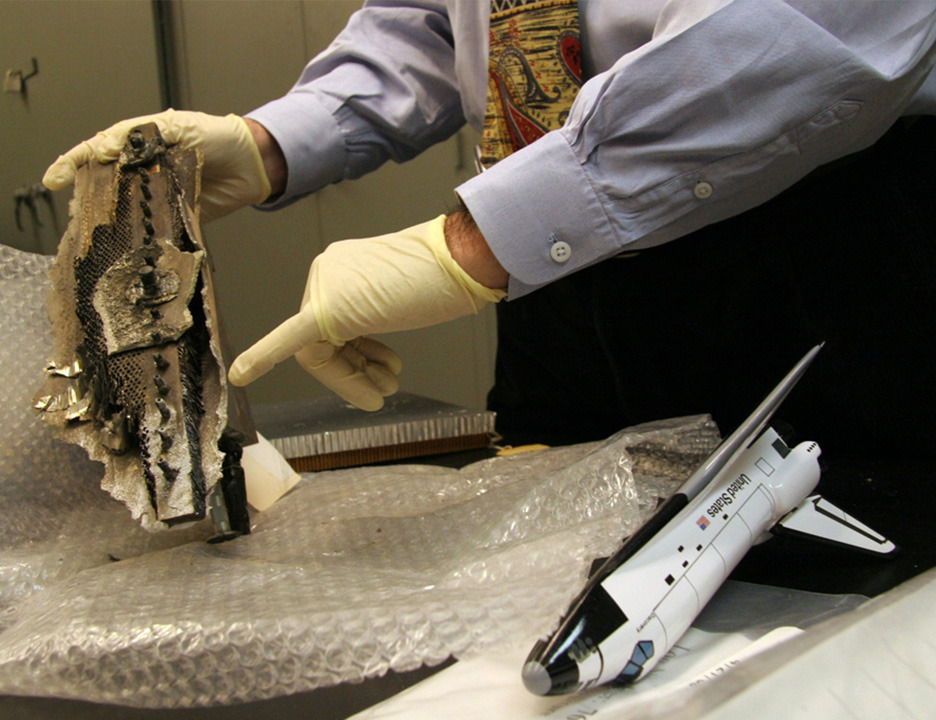 Professor Arnold Marder serves as a visiting scientist at NASA’s John F. Kennedy Space Center and works with agency engineers on the Return to Flight program following the Columbia disaster. He brings shuttle debris analysis into his Lehigh failure analysis course, where students investigate structural failures and contribute to understanding how the shuttle broke apart.